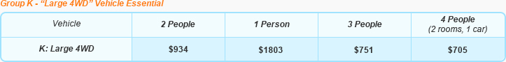 • 4 Days 4WD Vehicle hire, "no worries" unlimited kms, comprehensive insurance