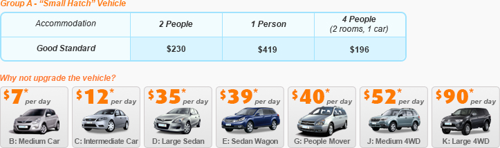*Starting holiday costs per person, two share, for low seasons (A$). Seasonal surcharges apply outside of low season. As prices vary based on travel dates, be flexible with dates to get the for the best deals! Vehicle Hire conditions apply (request Vehicle Hire Inclusions Sheet, also provided with Costings). Subject to limited availability at these prices, after which higher prices apply, book now. Some governments and service operators have Covid vaccination requirements. Your included flights advised via email with 24 hours to select alternative flights, routing or airline (alternatives may be at a higher price). Included flights may not be the most direct routing. Arrive earlier/stay longer for specified airports only. Stop-overs are not possible. Subject to Booking Conditions, see Important Information before booking. © HolidayMax™ Booking Code: mp77