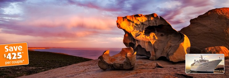 Enjoy a 4 day cruise to Kangaroo Island and Port Lincoln on the Eyre Peninsula as well as 3 nights accommodation in Adelaide with an Adelaide city tour, flights and transfers. Visit the “Seafood Capital of Australia” Port Lincoln as well as Penneshaw with a range of optional shore excursions. See the famous sights of Adelaide such as Hutt Street, Haigh’s Chocolates, the Torrens River the Adelaide Oval and Parliament House as well as free time to explore Adelaide at your own pace in this 8 day package. Themes include: South Australia, Departs from Adelaide, Ocean Cruise, Returns from Adelaide. + Show more