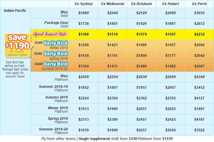 The Indian Pacific to Adelaide Discover is very popular. Many dates book out well in advance, please book soon.