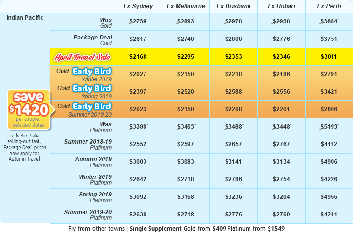 All meals onboard Indian Pacific, FREE beverages throughout your journey, FREE toiletries kit, Cabin Steward service, in-cabin music and commentary, use of ‘Outback Explorer Lounge’