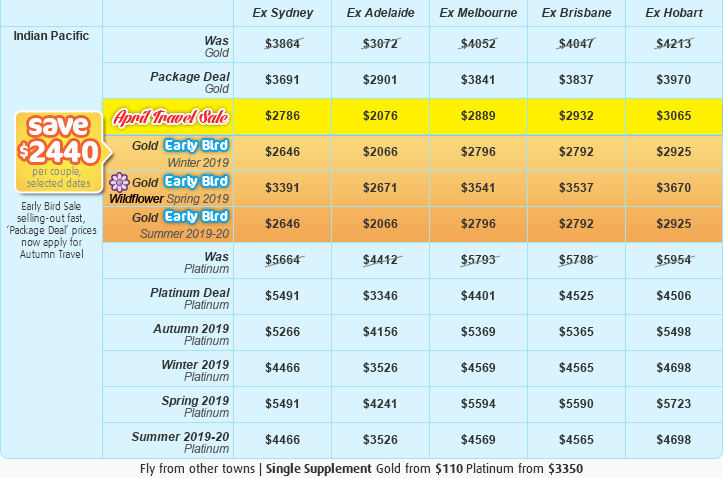 The Indian Pacific to Perth Discover <br> is very popular. Many dates book out well in advance, please book soon.