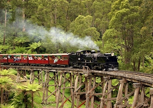 Enjoy all-inclusive Melbourne touring at its best, featuring the Dandenongs, Puffing Billy Train, Great Ocean Road, Phillip Island penguins, Special Tram Car Dinner, magnificent Yarra River cruises and more meals. 6 days in Melbourne with flights, Victoria luxury touring, 2 cruises, scenic railway, accommodation, meals and transfers. Visit the Dandenong Ranges and the Great Ocean Road and encounter the fairy penguins that call Phillip Island their home. Enjoy a special dinner aboard the Colonial Tramcar Restaurant and experience a ride on the famous Puffing Billy Steam Train as well as a cruise along the Yarra River. Themes include: Victoria, Departs from Melbourne, Luxury Coach, Returns from Melbourne. + Show more